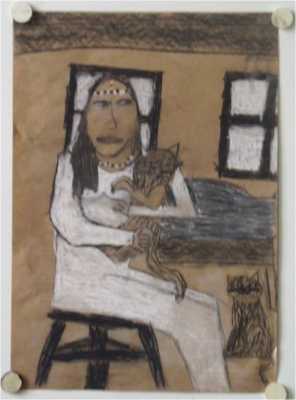 Die Knder fertigten Kohlezeichnungen von Menschen mit Katzen an